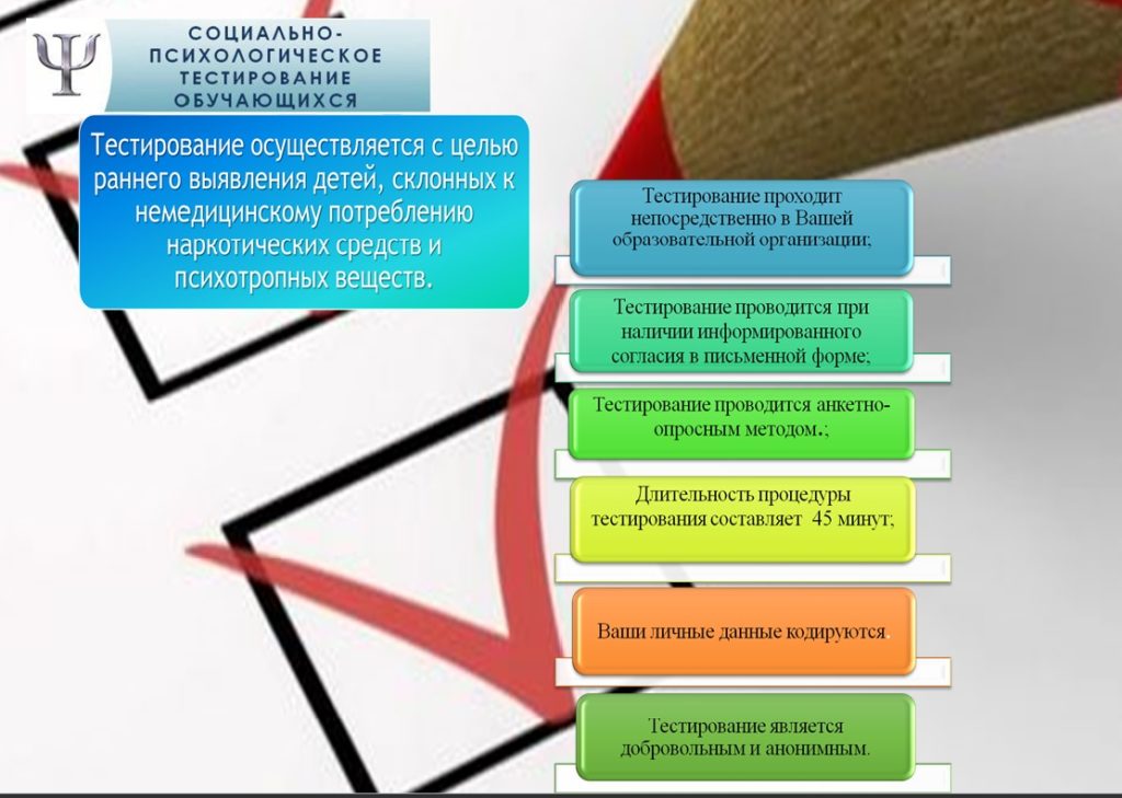 В соответствии с Федеральным законом от 24.06.1999 № 120-ФЗ «Об основах системы профилактики безнадзорности и правонарушений несовершеннолетних», постановлением Республиканской комиссии по делам несовершеннолетних и защите их прав от 12.05.2020 №2/1, протоколом заседания Межведомственной рабочей группы по предупреждению нарушений прав и законных интересов несовершеннолетних и молодежи от 09.02.2021г., на основании приказа отдела образования администрации города Джанкоя Республики Крым от 20.09.23г. № 459 /02-01 «О проведении социально-психологического тестирования обучающихся общеобразовательных учреждений города Джанкоя» с целью оперативного реагирования на негативные процессы в подростковой среде, выработки межведомственных мер социальной профилактики организации индивидуальной и групповой профилактической работы с несовершеннолетними, выявления негативных наклонностей среди обучающихся в 2023-2024 учебном году в МОУ «СШ № 8» будет проведено социально-психологическое тестирование обучающихся 8-11 классов.