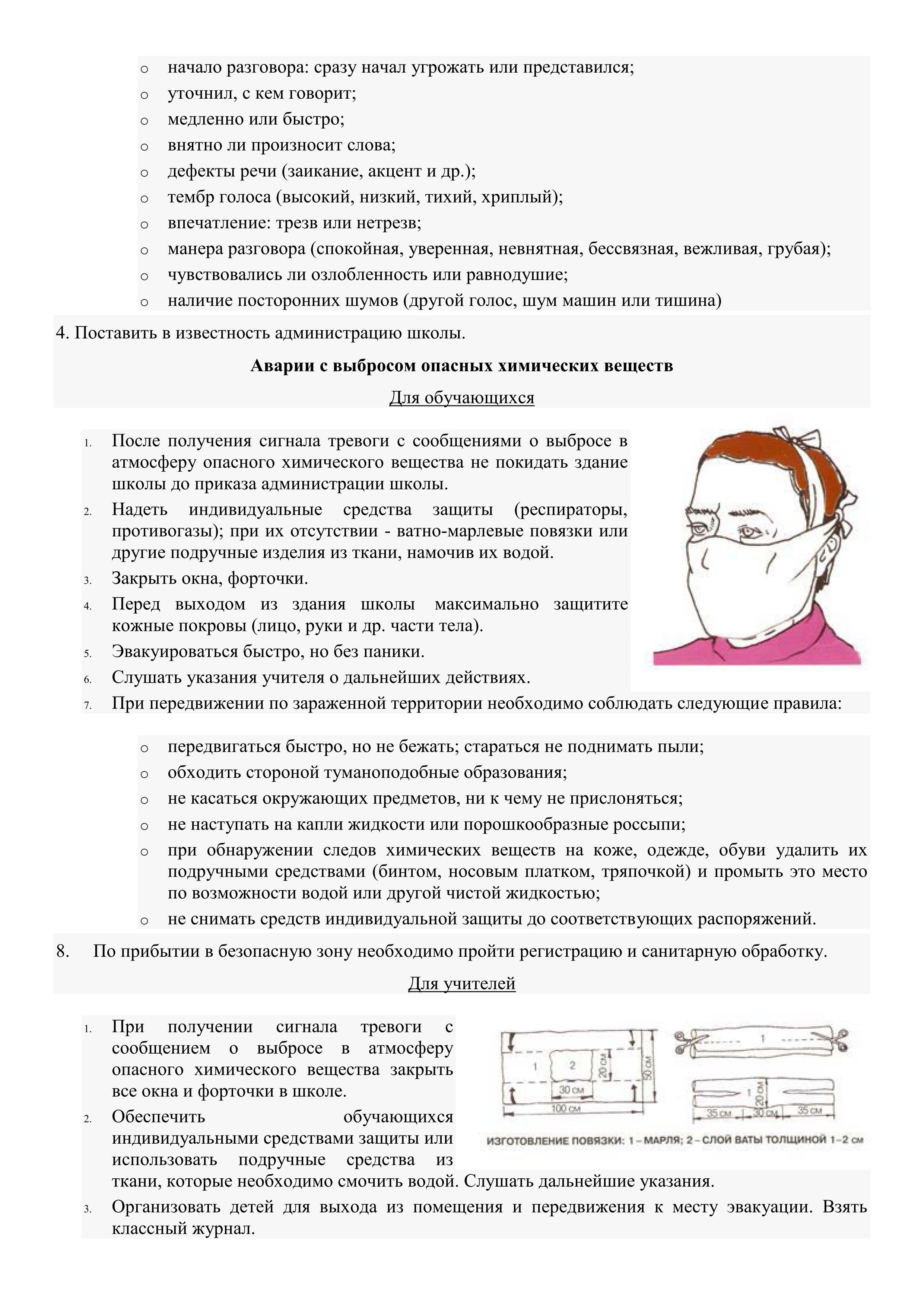Признаками взрывоопасных предметов могут быть бесхозная сумка, портфель, коробка, свёрток, деталь, какой-либо предмет, обнаруженный в школе, в подъезде, у дверей квартиры, под лестницей, в машине и общественном транспорте; натянутая проволока или шнур; провода или изолирующая лента, свисающая из-под машины.