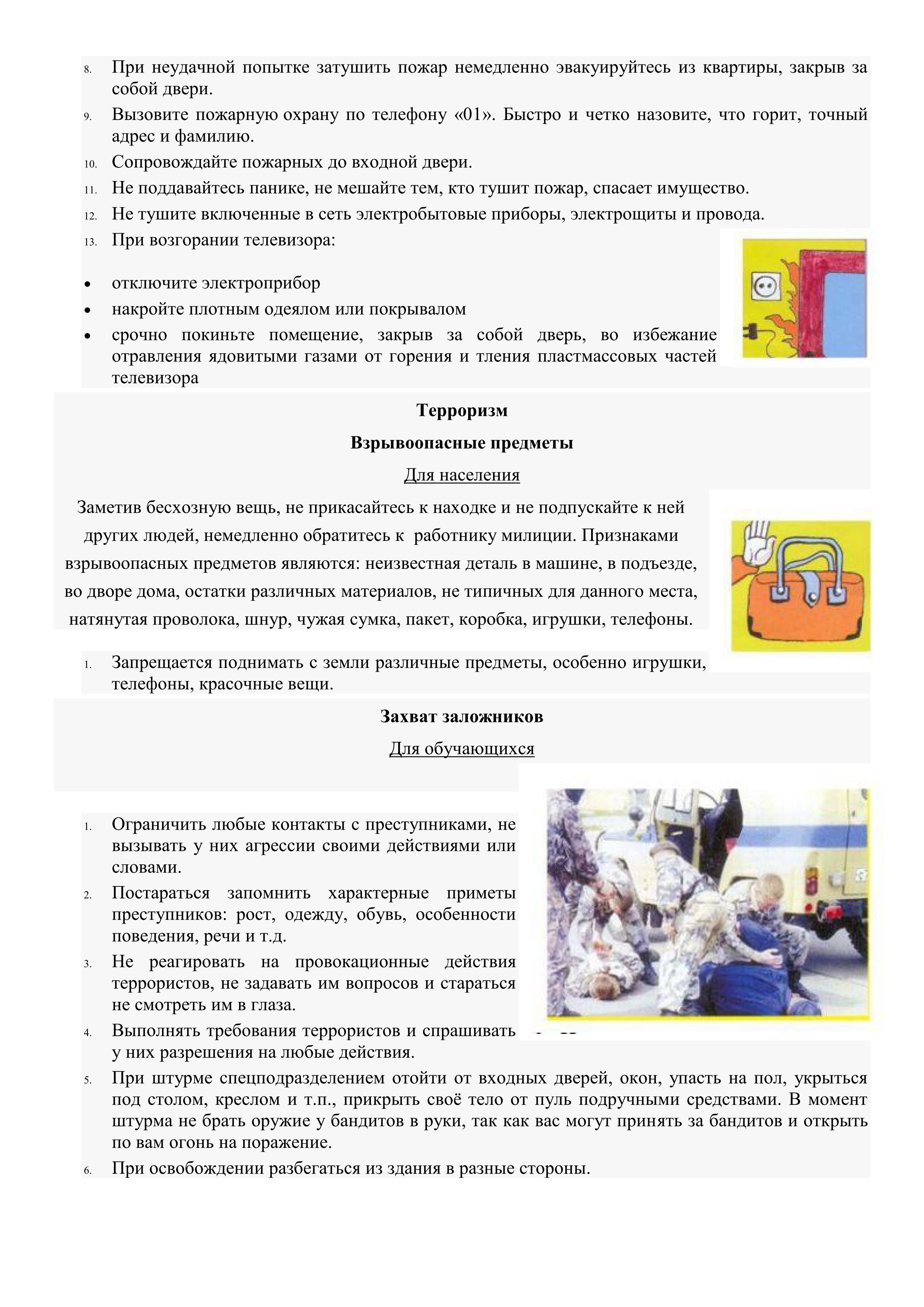 Постарайтесь оказать посильную помощь пострадавшим от взрыва или от выстрелов до прибытия машин скорой помощи. Передайте свои сведения сотрудникам спецслужб, прибывшим на место происшествия.