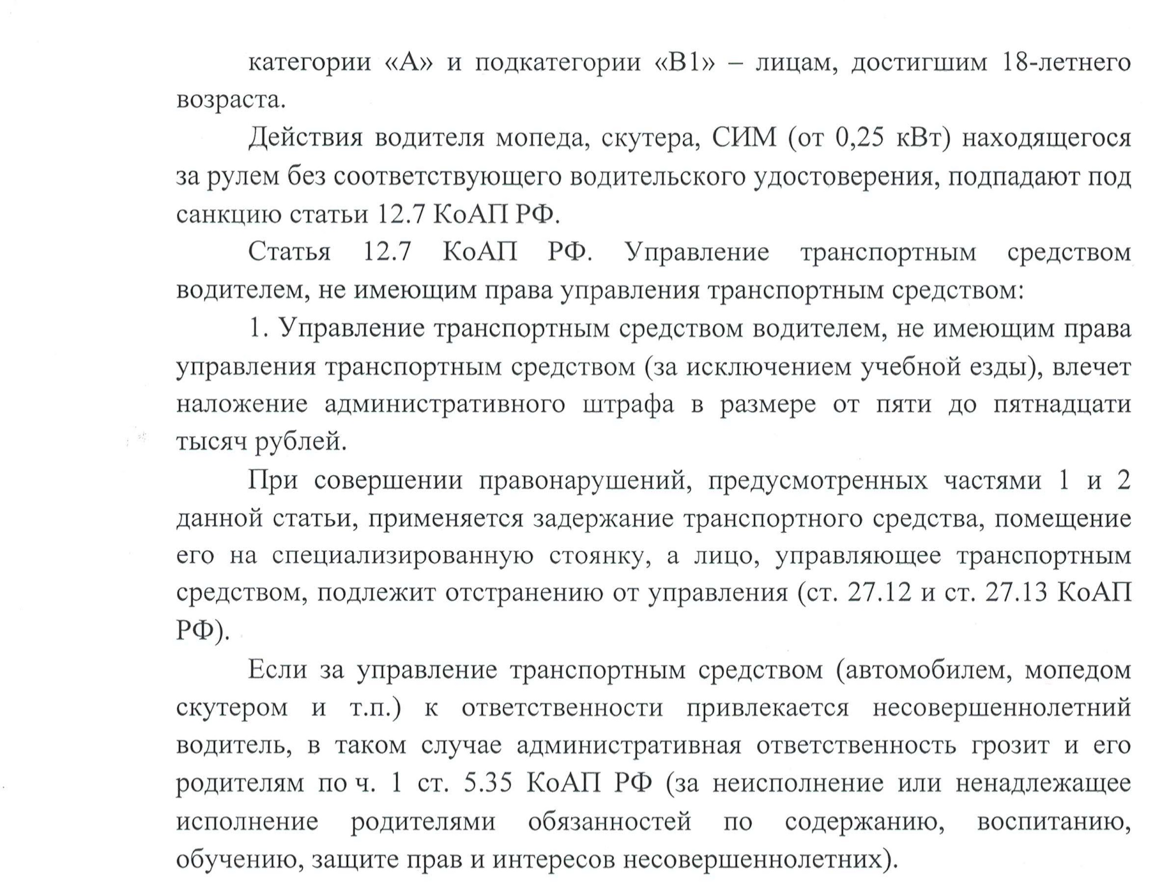🚨Напоминаем, что за управление таким водителем мопедом, мотоциклом, автомобилем, не имея права управления, в соответствии с ч. 1 ст. 12.7 КоАП РФ предусмотрена административная ответственность в виде штрафа в размере от 5 до 15 тысяч рублей.